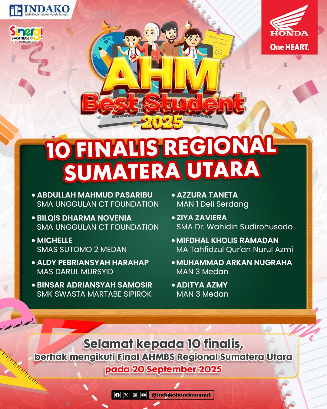 Santri MAS Darul Mursyid lolos seleksi pada AHM Best Student 2025 pada 14 September 2025