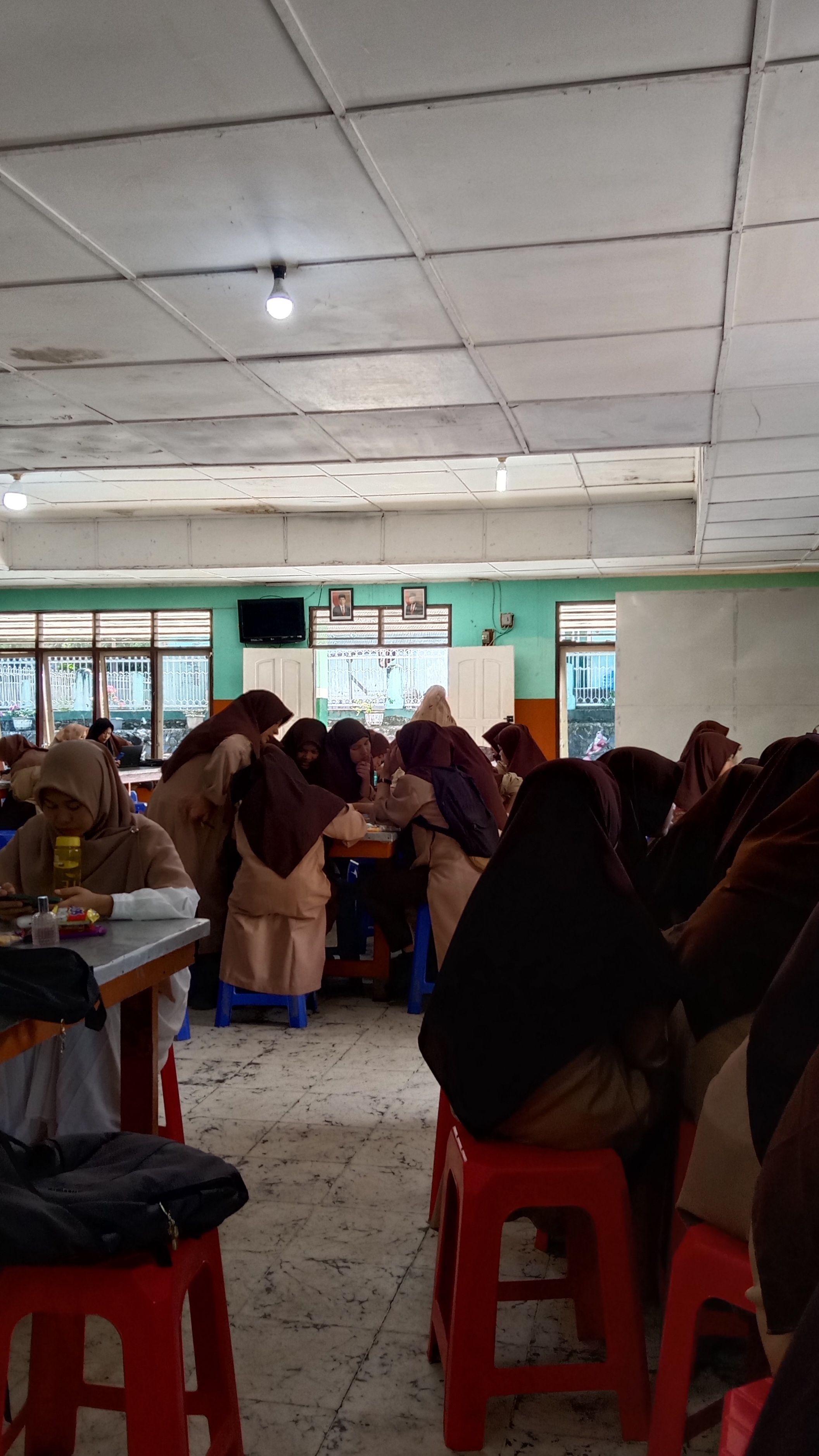 Kegiatan belajar di aula sembari menunggu pergantian shift ujian semester genap T.A 2023/2024